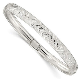 Sterling Silver 6.5mm Laser and Diamond-cut Flexible Bangle