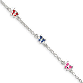 Sterling Silver Multi-color Enamel Butterfly with 1" ext. Children's Bracele