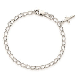 Sterling Silver Polished Latin Cross Charm with 1" Ext. Children's Bracelet