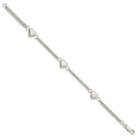 Sterling Silver Polished Fancy Large Heart Link Bracelet