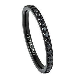 Titanium Black IP Plated Half Eternity Black CZ 2mm