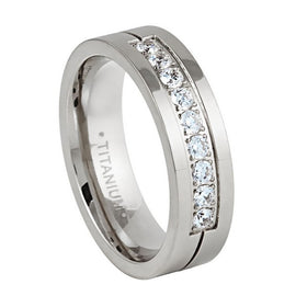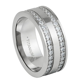 Unplated Titanium Ring Double Row Princess cut Eternity CZ 8mm