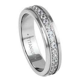 Titanium Rose IP Plated Double Full Eternity White CZ 6mm