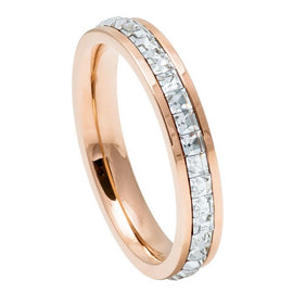 Rose Gold IP Plated Titanium Ring Princess cut Eternity CZ 4mm