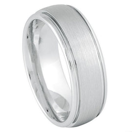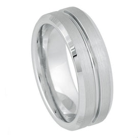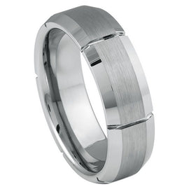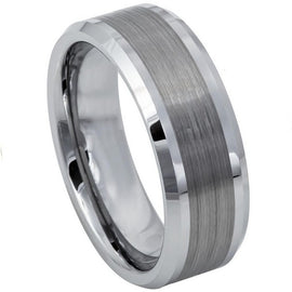 Tungsten Ring Brushed Center High Polished Beveled Edge 8mm