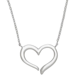 Open Heart Necklace in Sterling Silver 16"+2ext