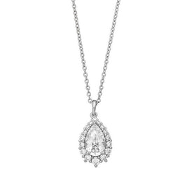 Pear Shape CZ Drop with Round CZ's Halo Necklace