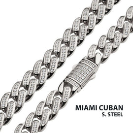 Stainless Steel 12mm Steel Miami Cuban Chain Necklace