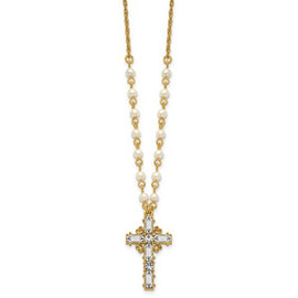 SOF Gold-tone Imitation Pearl Chain and Crystal Cross 20" Necklace
