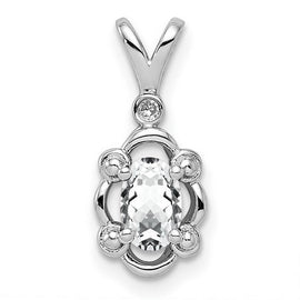 Sterling Silver Rhodium-plated White Topaz and Diam. Pendant