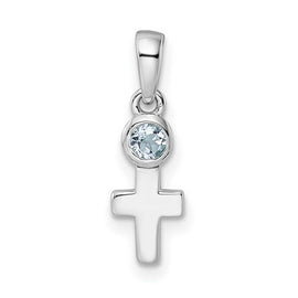 Sterling Silver Rhodium-plated Polished Aquamarine Cross Pendant