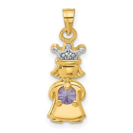 14k Diamond and Synthetic June Birthstone Girl Pendant