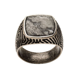Men's Stainless Steel Silver IP with Gray Jasper Stone Ring