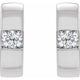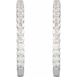 14K White 1/4 ctw Natural Diamond 12 mm Hinged Huggie Hoop Earrings
