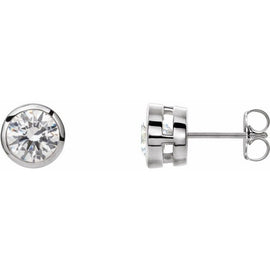 14K White 6.5 mm Round Tapered Bezel-Set Earring Mounting