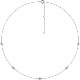 14K White 1/6 ctw Natural Diamond 5-Station 16"-18" Necklace