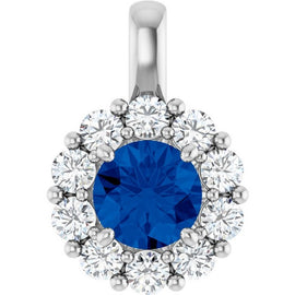 14K White Natural Blue Sapphire & 1/2 ctw Natural Diamond Pendant