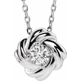 14K White 1/6 ctw Natural Diamond Knot 16"-18" Necklace