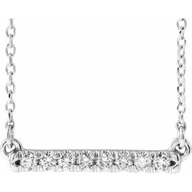 14K White 1/8 ctw Natural Diamond French-Set Bar 18" Necklace