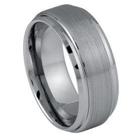 Tungsten Ring Brushed Center Stepped Edge 9mm