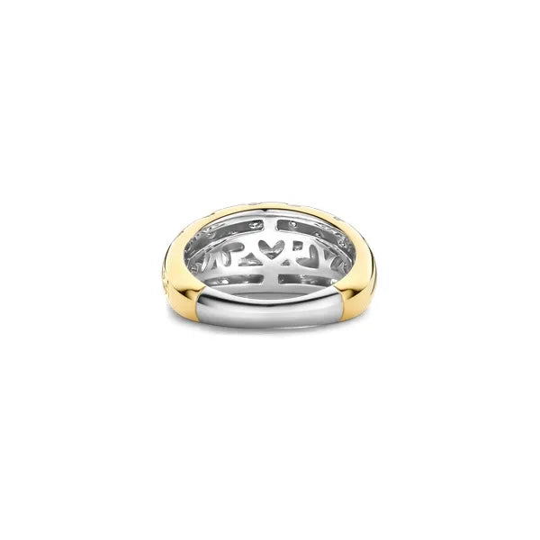 Radiate effortless sophistication with this TI SENTO Gold-Plated Silver Domed Ring 12197ZY, a piece that blends timeless design with the carefree spirit of summer. Meticulously crafted from premium 925 sterling silver and plated in luminous yellow gold, this stunning statement ring is adorned with a cluster of dazzling white cubic zirconias that catch the light from every angle. Its domed silhouette exudes elegance, while the sparkling stones add a touch of refined brilliance, making it a versatile accessory for any occasion. Whether you're basking in the sunlight on a beach day or lighting up a night out, this ring transitions seamlessly from day to night, elevating your look with ease. Wear it alone as a statement of classic beauty or stack it with other TI SENTO pieces for a personalised, radiant style. Crafted with care for sensitive skin, this nickel-free and hypoallergenic ring ensures lasting comfort and quality.