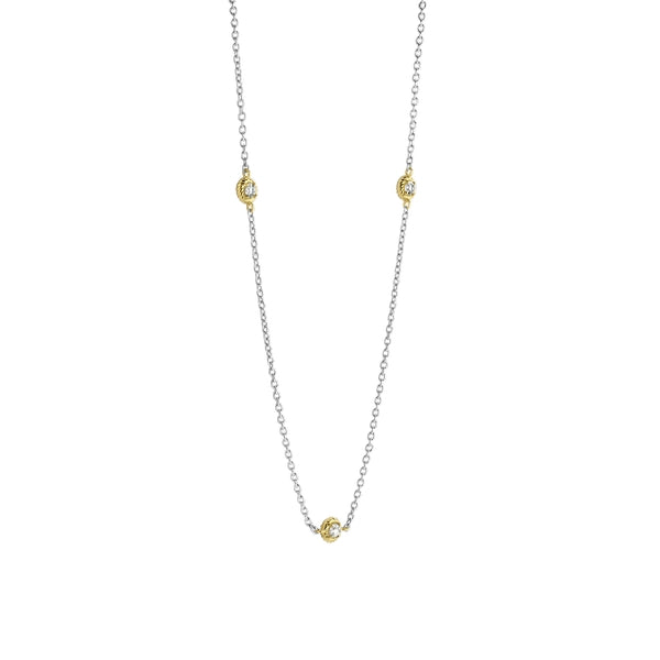 This TI SENTO gold-plated chain necklace 34035ZY combines the richness of yellow gold with the brilliance of cubic zirconia. Crafted from premium 925 sterling silver, it is then coated with a platinum layer to protect it from daily wear and keep it luminous. The dazzling cubic zirconia stones handset in gold-plated settings create a breathtaking display of radiance. A reminder of the sun's radiance, the design was inspired by the magical golden hour. Let the brilliance of the cubic zirconia and the radiance of yellow gold illuminate your look and your smile. All our necklaces are nickel-free and hypoallergenic.