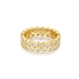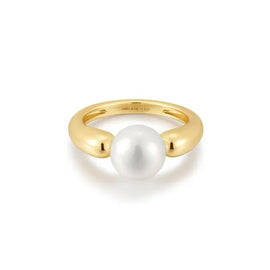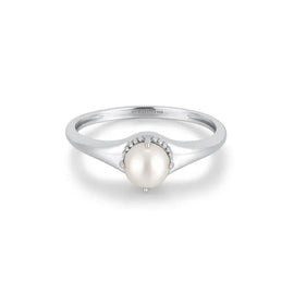 Gold Freshwater Pearl and White Cubic Zirconia Bezel Set Ring