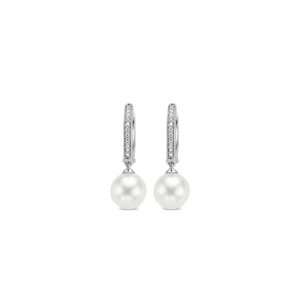 These TI SENTO pearl earrings have been designed with a row of brilliant-cut cubic zirconia. The sterling silver used in these earrings has also been finished with rhodium, adding extra durability and shine to the end product. Because our in-house design team have used different materials in creating these earrings, they can be mixed & matched with other pearl jewellery or pieces featuring cubic zirconia with equal success.