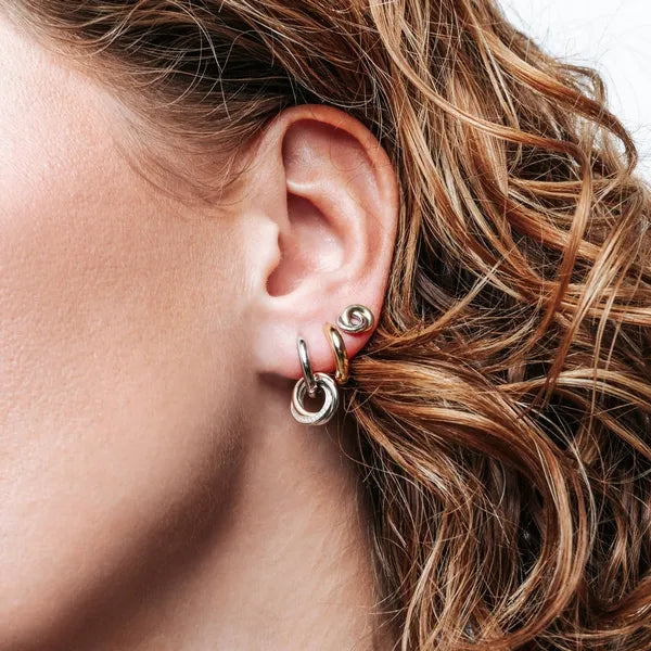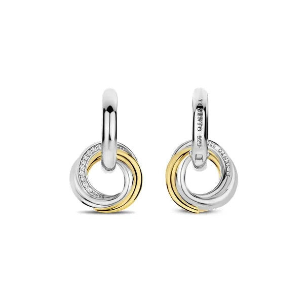 Discover a captivating interplay of textures and metals with these TI SENTO gold-plated silver Earrings 7976ZY. Crafted from 925 sterling silver and plated with platinum for lasting brilliance, these earrings feature two sleek silver hoops adorned with intricate intertwined circle charms. The charms flaunt radiant yellow gold-plating, dazzling pave and silver. These intricately woven pieces embody the perfect blend of artistry and design, capturing the essence of timeless chic with a contemporary edge. Add a touch of effortless charm to your ears with these stunning pieces. Wear them alone for a minimalist statement or layered with other TI SENTO earrings for a personalised touch that exudes confidence and allure. Crafted with care for sensitive skin, these nickel-free and hypoallergenic earrings ensure lasting comfort and quality.