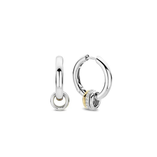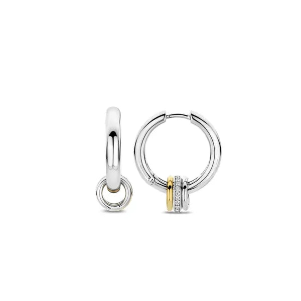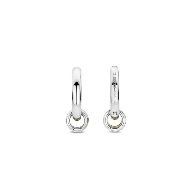 Timeless elegance and modern playfulness merge in these charismatic TI SENTO Silver Hoop Earrings 7981ZY. Crafted from 925 sterling silver, they're plated with precious platinum to ensure they stay luminous and protected from scratches. These classic hoops boast a captivating charm on each loop featuring a captivating design – a trio of interlocking hoops. One in silver, another boasts the warm glow of yellow gold plating, and the central one dazzles with a shimmering pave of cubic zirconia. These versatile earrings offer a touch of playful sophistication, perfect for elevating any outfit. The combination of classic hoops and the modern charm design makes them ideal for both everyday wear and special occasions. Wear these hoop earrings solo for a touch of understated elegance, or pair them with other TI SENTO pieces to create a personalised look that reflects your individual style. Crafted with care for sensitive skin, this nickel-free and hypoallergenic necklace ensures lasting comfort and quality.