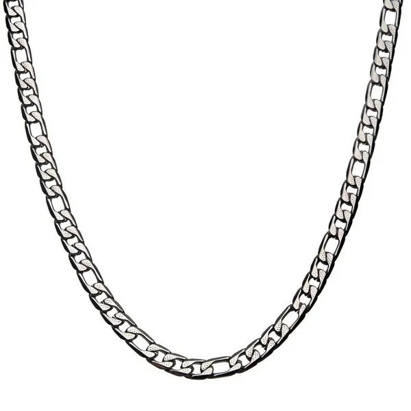 Men's Stainless Steel 7.5mm Polished Speckled Pattern Curb Necklace.