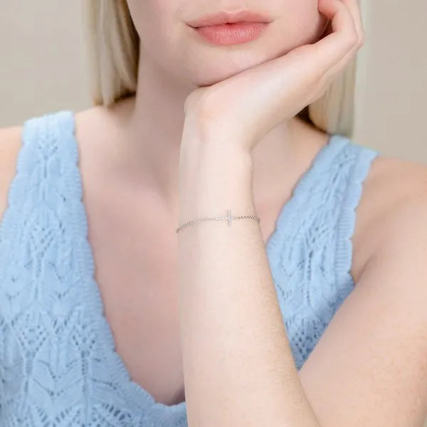 This delicate bracelet features a diamond cross, adding a subtle glimmer to your everyday moments. A timeless symbol of grace and strength, it's perfect for layering or wearing solo.