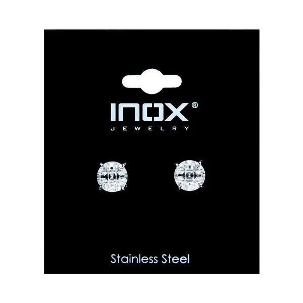 316 Stainless Steel with Hashtag Cubic Zirconia Round Cut Stud Earrings.