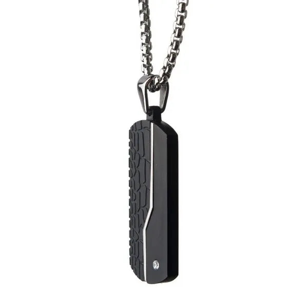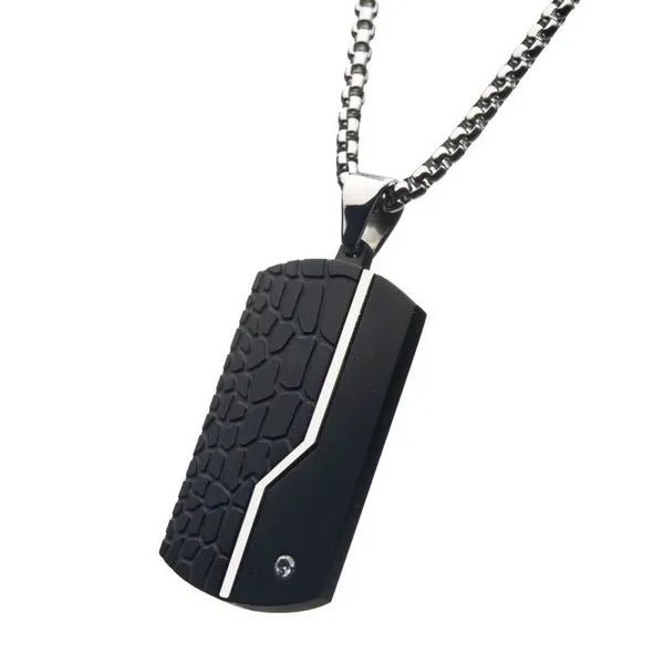 Men's Stainless Steel Crocodile Pattern in 2mm Clear Cubic Zirconia with 24 inch long Bold Box Chain Dog Tag Pendant.